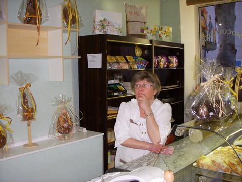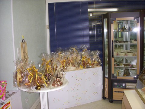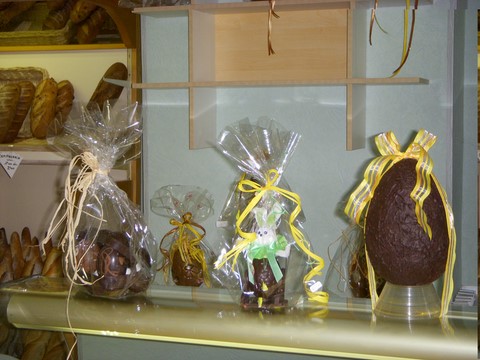 After Philippe and Nadia Corlet left, we were all understandably concerned about their successors. Hallelujah! The new bakers are Gerard and Catherine Denis, formerly from Albi. Gerard is a master pastry chef and chocolate-maker. The store looks as glorious as before, and the offerings just as yummy... As Easter approaches, chocolate is king...