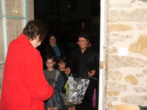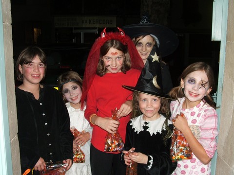 Halloween is just as big here as it was in our corner of Los Angeles, and a lot more relaxed. Mistresss of Ceremonies Diva Maggie in her black-as-night cloak supervises.