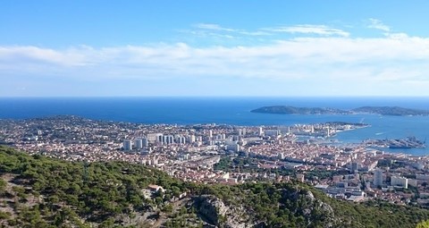 The Mont-Faron is THE mountain that towers above the harbor city of Toulon. You reach the summit either by taking a cable car, or by driving on a very narrow and scary mountain road. At its top stands a military museum celebrating the Allied liberation of France, a zoo, a church and plenty of roads and trails for nature lovers.