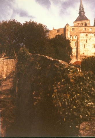 Mont Saint-Michel is an island castle built in a bay located between Britanny and Normandy. The location is superb, the Mont itself and its castle, church, ramparts, etc.are well worth the visit. When they say in the brochures that the tide comes in at the speed of a galloping horse, they're not kidding. In one hour (the time to eat dinner), we went from low tide and sandy beaches to being on an island.