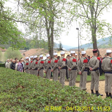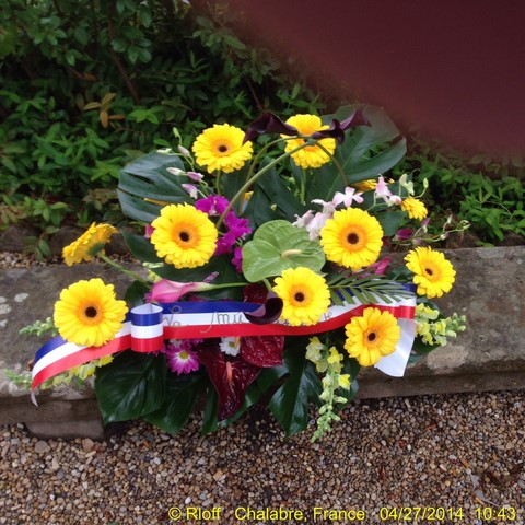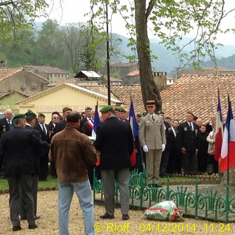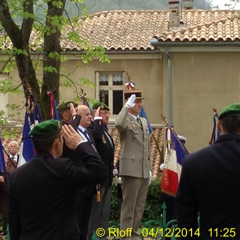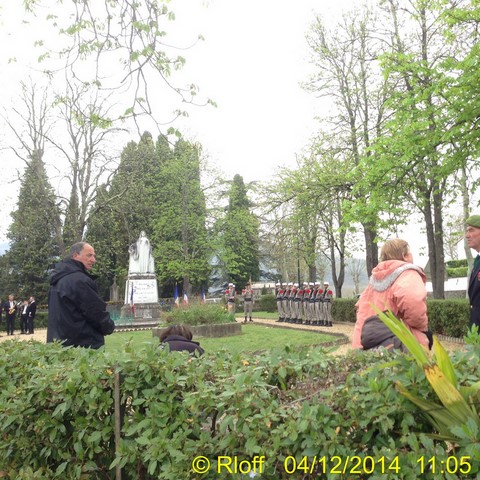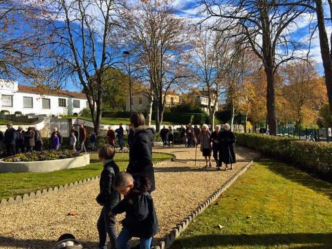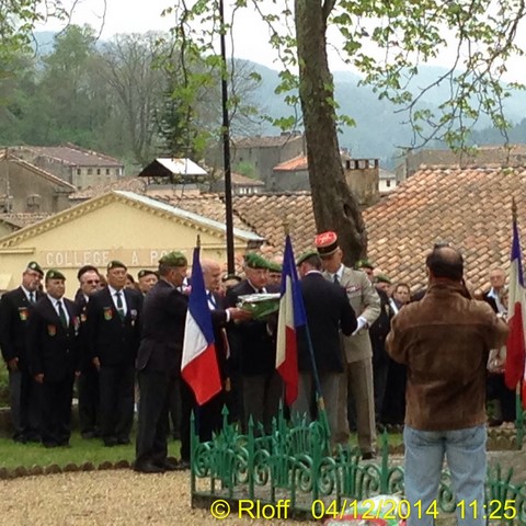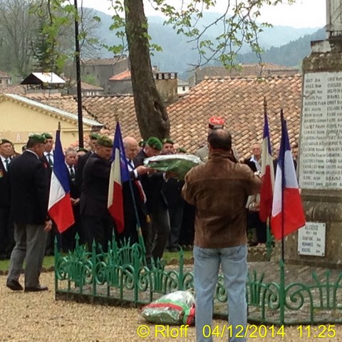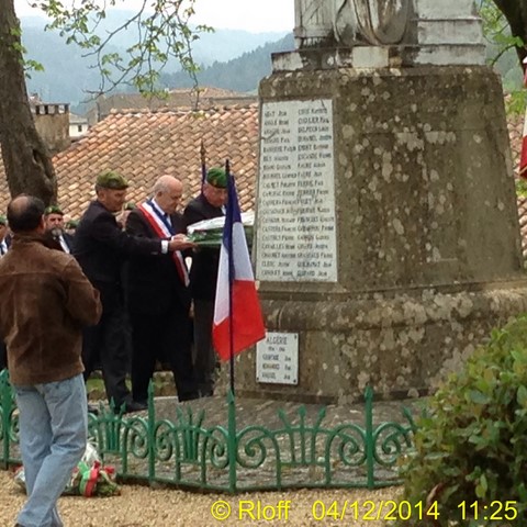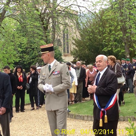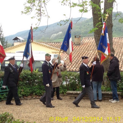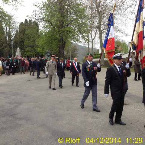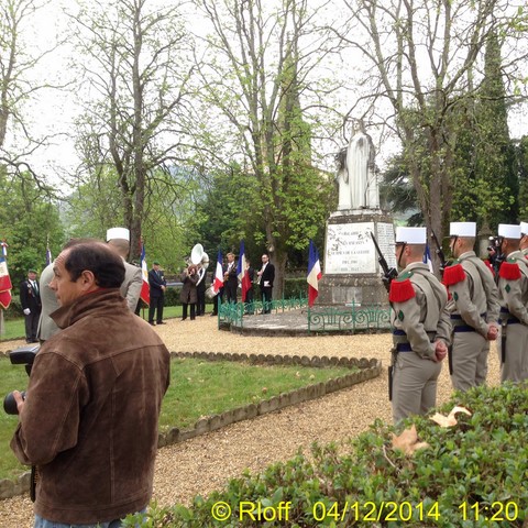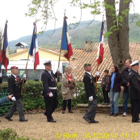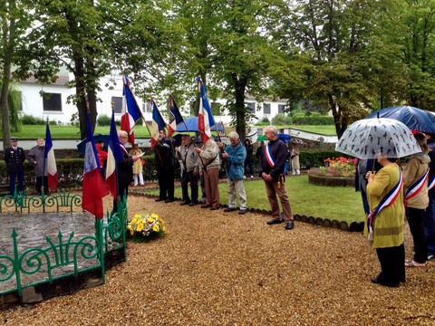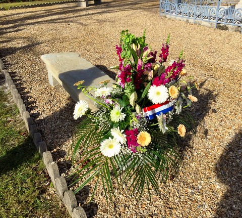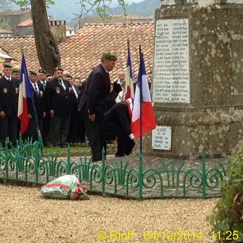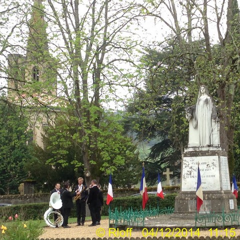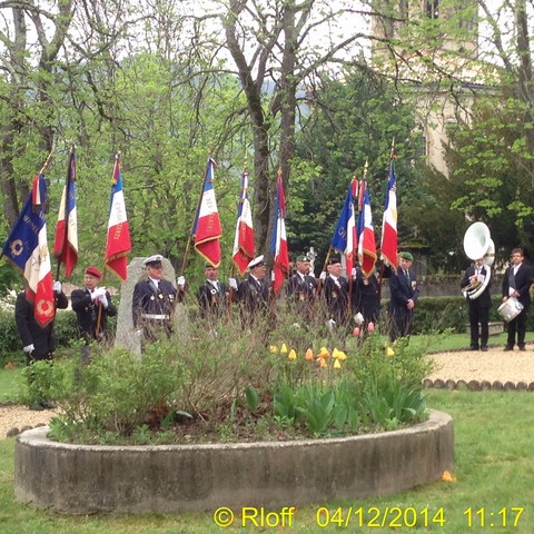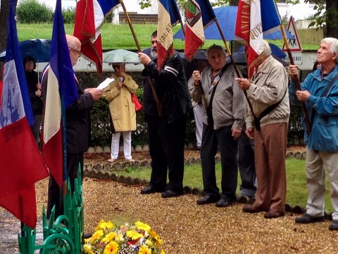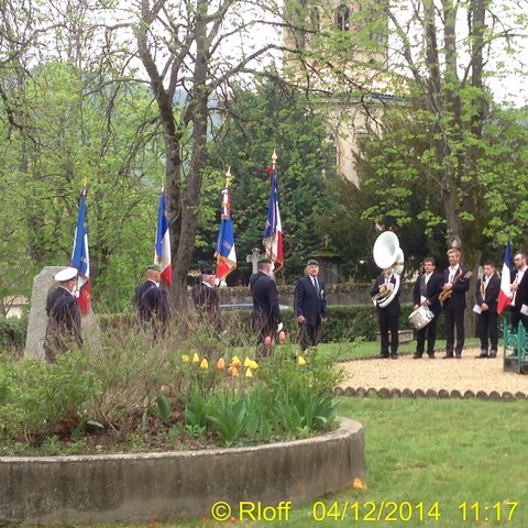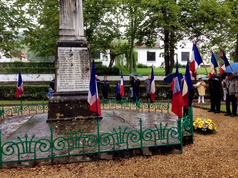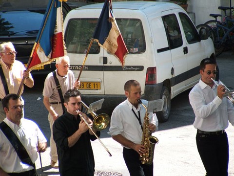 The ceremonies start when the band opens the procession at the Town Hall, followed by the flag bearers, then the Notables and the firemen. We go to the Monument aux Morts where a wreath is laid by the Mayor.