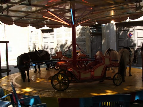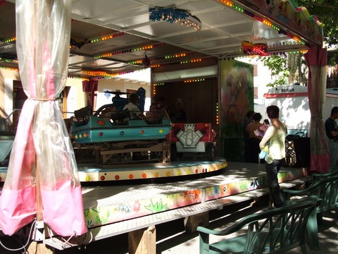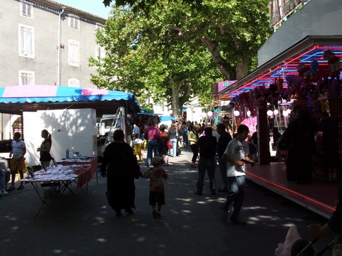 During the long weekend of the Ascension (Thursday 25 to Sunday 28 May in 2006), the Fête Foraine moved into Chalabre. This year, it was located on the Cours Colbert and the Cours d'Aguesseau (it alternates Cours every year). It consisted of the usual array of rides, booths and stands, and was topped at the bottom of Cours Colbert by a bar and a stage used by a very loud band that pummeled the ancient houses with way too many amps of basse sound until 2 a.m. every night.