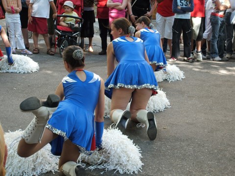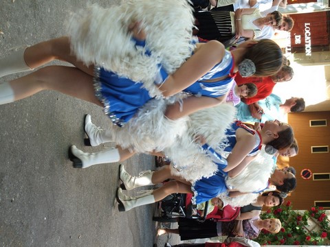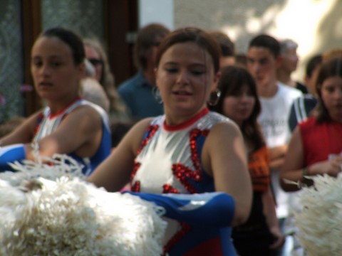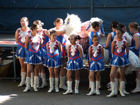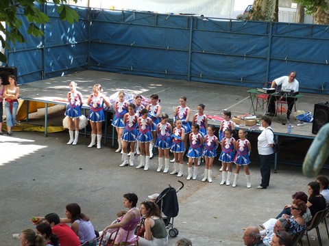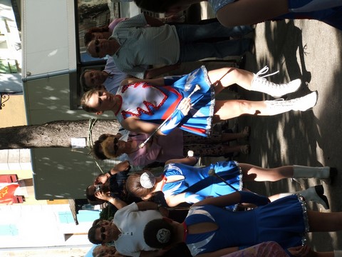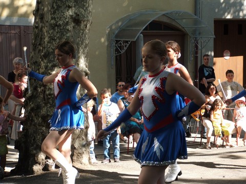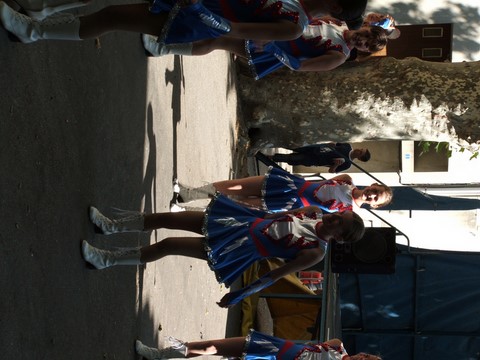 THE MAJORETTES DU PAYS D'OLMES are the local cheerleading squad. They arrived late Sunday Afternoon and their bravura performance was the closing ceremony of the Fair.