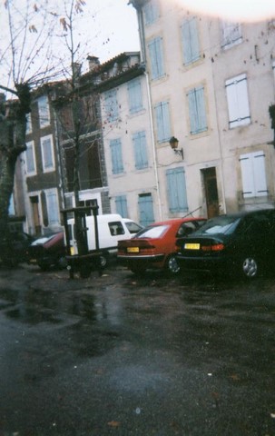 These photos were taken during out initial Dec. '04 "scouting" trip on a disposable camera on a late December afternoon. It would have taken the talent of a Ridley Scott to capture the soft, misty quality of the light, the low clouds and the rust-to-dark green pastels of the vineyards and forests, or the cozy, medieval charm of Chalabre...