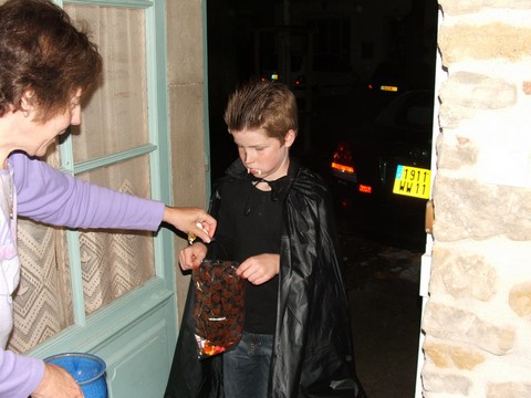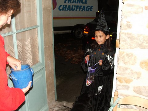 Halloween is just as big here as it was in our corner of Los Angeles, and a lot more relaxed. Mistresss of Ceremonies Diva Maggie in her black-as-night cloak supervises.