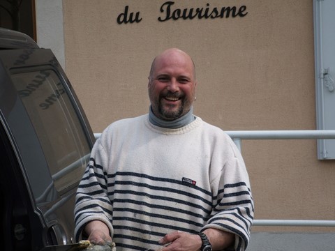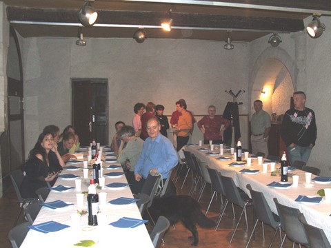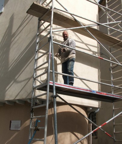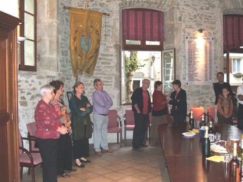 The very talented local artist & film set decorator Guy Sahuc (with his wife Agnes) has been commissioned by the equally newly-redecorated Community Center decides to paint a historical fresco on its wall. After much research, both technical and historical, the work has begun... The final fresco, in all its glory.