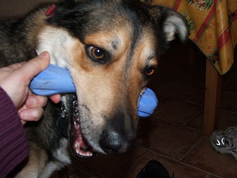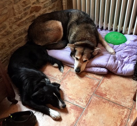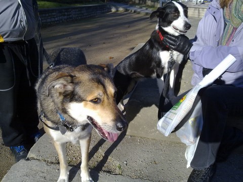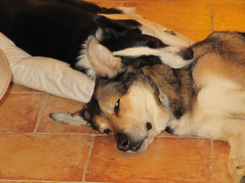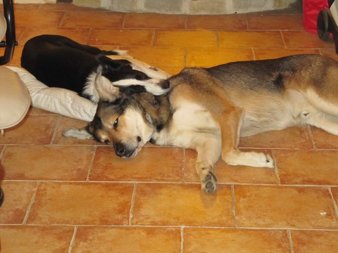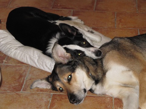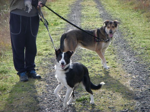 Puis, l'année dernière, les mêmes puissances mystérieuses qui nous avaient envoyé Maggie nous envoyèrent Shmoo. Nous n'avions jamais désiré avoir plus d'un chien à la fois pour tout un tas de raisons. Mais non seulement Shmoo nous choisit, mais Maggie choisit Shmoo! Au lieu d'être jalouse et d'essayer de garder "ses humains" pour elle, elle lui souhaita la bienvenue, joua avec lui et s'épanouit en sa présence.