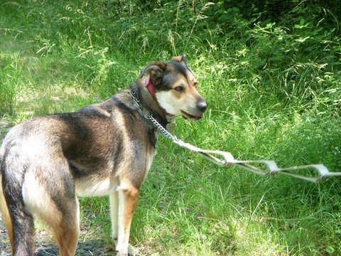 The next foster family was not a pleasant experience. The woman of the house didn't like dirt, didn't like touching dogs and had cats. Maggie was left to live outside in a dog run for another couple of months. She had no human companionship at all. For a reason that escapes me, the foster family got a load of fire wood (we live in Los Angeles, don't need much in the way of fireplaces here!), the wood was infested with ticks. Maggie was covered in 125 of them when they took her for grooming.