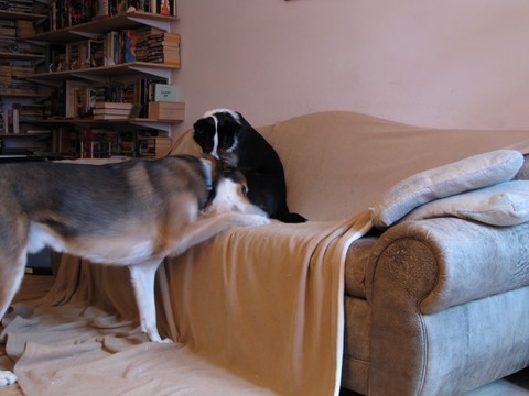 It's getting light out now and They are still asleep. Don't they know that there are things to do? Important things! In fact, what's that noise? I need to go and see what it is; it could be important. What if a c*t is coming near? I'll make my most ferocious noises; that will frighten whatever it is away.