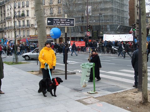 Then Maggie McMiggins (and her bedraggled assistant) takes part in a Parisian demonstration by French Workers and Trade Unions in favor of the 35-hours week. Maggie wears her Che Guevara red bandana to express undying solidarity with the struggling masses (but is nevertheless concerned by the abundance of air horns).