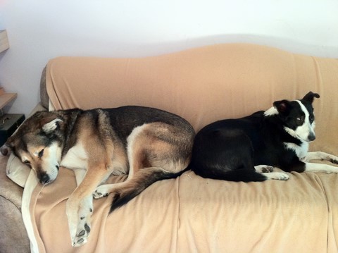 Then, last year, those same mysterious forces which had sent us Maggie, sent us Shmoo. We have never wanted to have more than one dog at a time for a variety of reasons. But not only did Shmoo choose us, but Maggie chose Shmoo! Instead of being jealous and guarding her humans from him, she welcomed him, played with him and seemed to blossom with his presence.