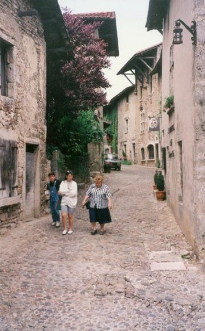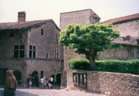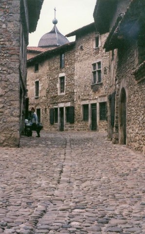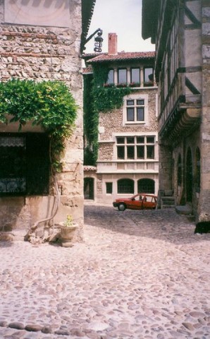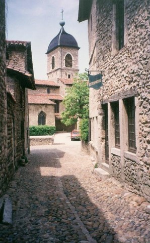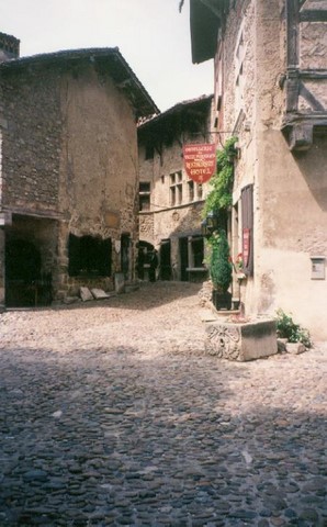The Ostellerie du Vieux Perouges is the ONLY "real" hotel-restaurant within the city walls. I suppose there are other things on the menu, but what I recommend with all my heart is the Poulet de Bresse, a local chicken raised on pure grain according to traditional methods. It is wonderful! This truly is a chicken that is unlike anything that we modern folk are used to eating. Like the finest wines it is an "appelation controlée" which means that the breed as well as the conditions in which the birds are raised are guaranteed to be of a certain quality. Have it roasted and served with a fabulous "gratin dauphinois" (marvelous potatoes!) and you won't be disappointed.