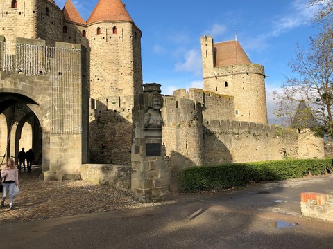 The walled medieval city of Carcassonne is in the Department of the Aude in the South of France -- it is a sight not to be missed. The largest medieval fortress of its kind in France, it sports 26 towers, ramparts, a castle, a basilica and numerous, wonderful medieval treasures. It is also a LIVING city, with gardens, an open-air theatre, beautiful hotels and wonderful restaurants.