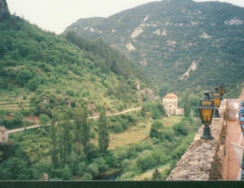 The Chateau des Madières at Madieres, a very small town in the Gard, is a beautiful hotel lovingly restored by its owners. Overlooking a canyon-like vallee in the Cevennes, not far from the birthplace of the famous Roquefort cheese, the Chateau combines outstanding location, modern comfort and a truly superb restaurant. Even if you aren't staying at the Chateau, the restaurant is definitely worth a visit. There's a marvelous view of the rocky hillsides, but you won't pay attention to the view when you're eating the sublime food. If you are a fan of roquefort cheese, you will have a hard time choosing amongst the many roquefort-based dishes on the menu. JM and I made each other choose different things so we could each taste what the other one had. Neither of us was disappointed. It has unfortunately gone out of business.